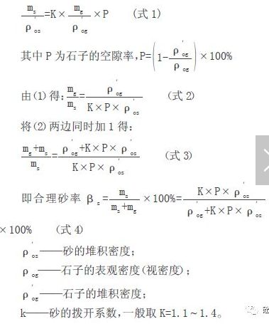 根据“填充包裹原理”即可计算合理砂率。设满足混凝土填充包裹要求砂用量为ms,石子用量为mg,由混凝土“填充包裹原理”可得: